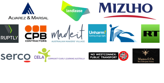 Clients have included large bluechip multinationals such as Mizuho Bank, Alvarez & Marsal, CPB Contractors and Lendlease, as well as international broadcasters like Ruptly and major government clients. We also provide low-cost ethical solutions for startups and NGOs.